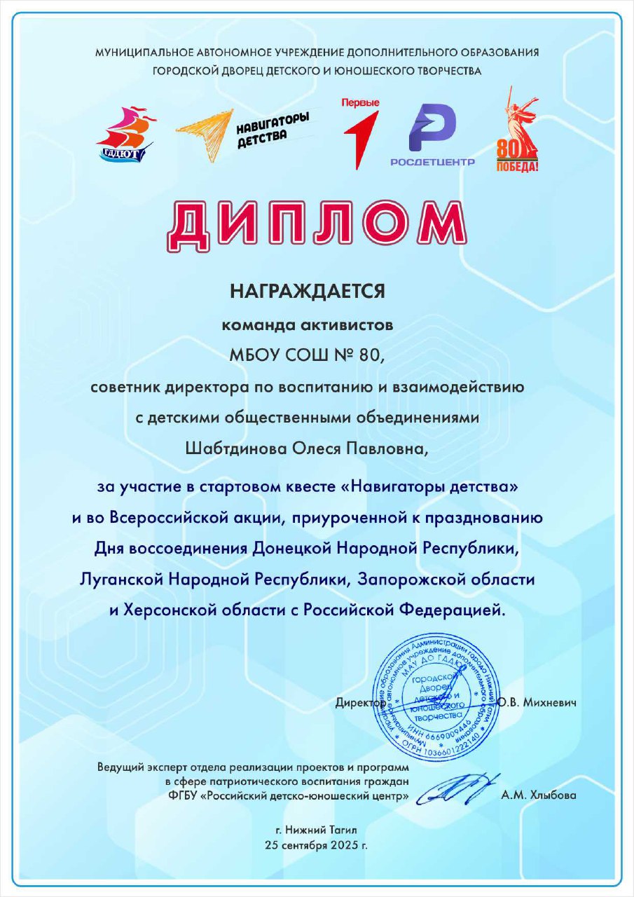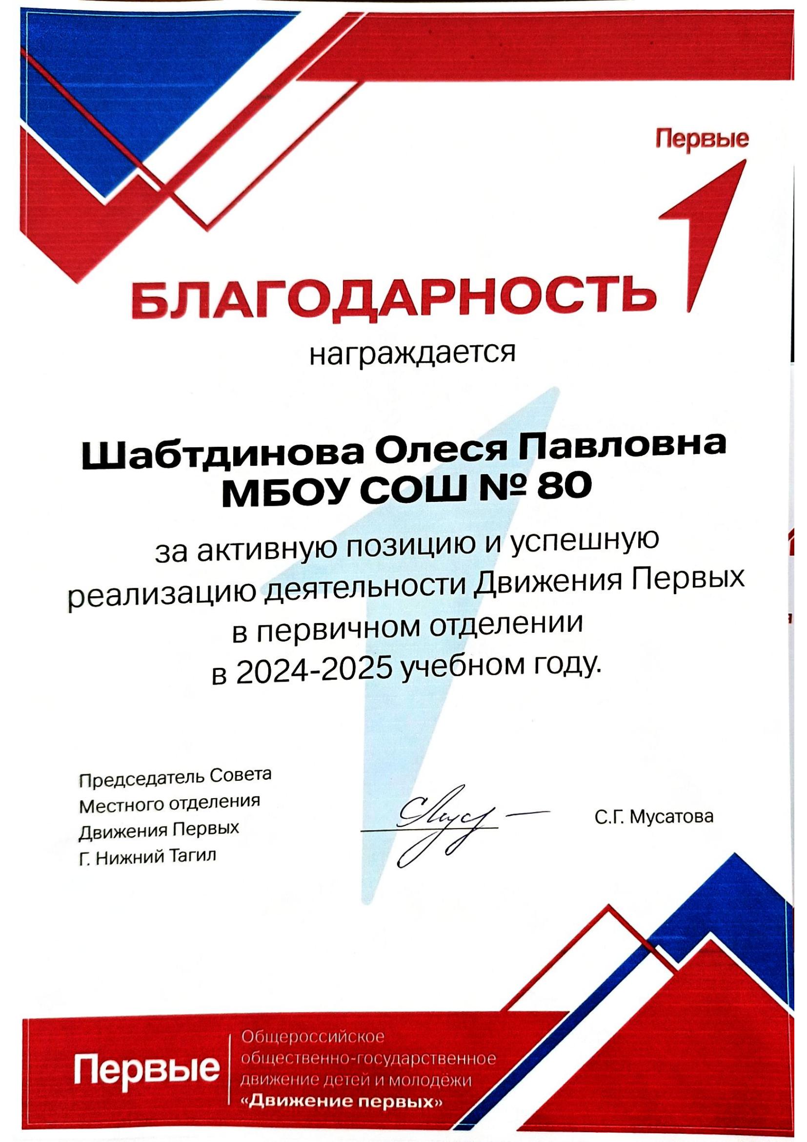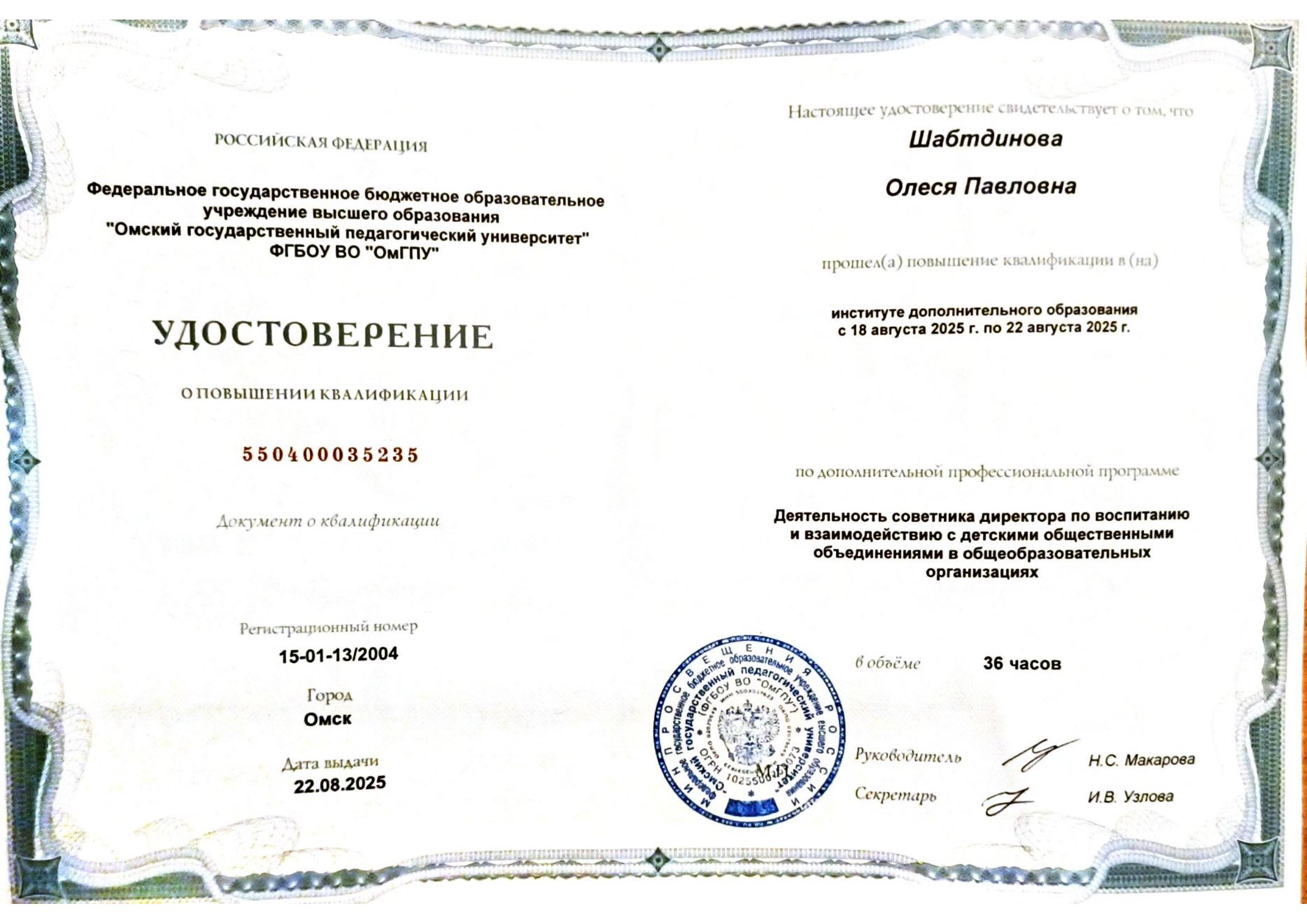Шабтдинова Олеся Павловна - Советник директора по воспитанию и взаимодействию с детскими общественными объединениями, Руководитель школьного Центра детских инициатив: